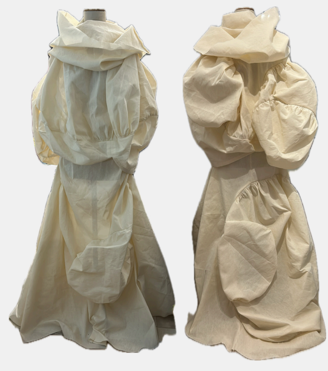 Para o Moda Tech, apresentou peças nascidas do seu livro de testes em manipulação têxtil, um compilado de experimentações desenvolvidas ao longo dos anos. As criações reúnem tingimentos manuais, manipulações térmicas e pontos de costura aplicados de forma orgânica, refletindo um processo que se constrói por pausas, sobreposições e conexões.