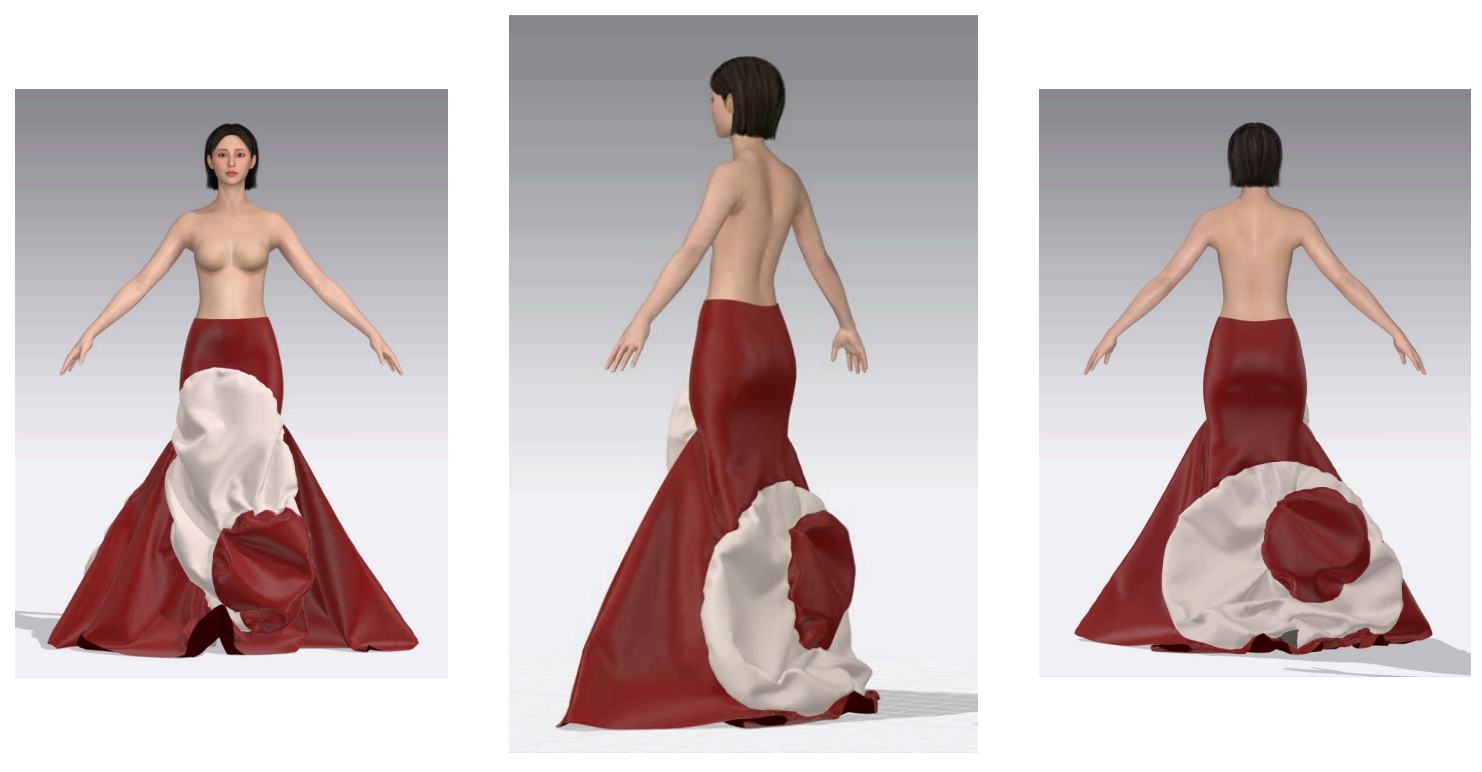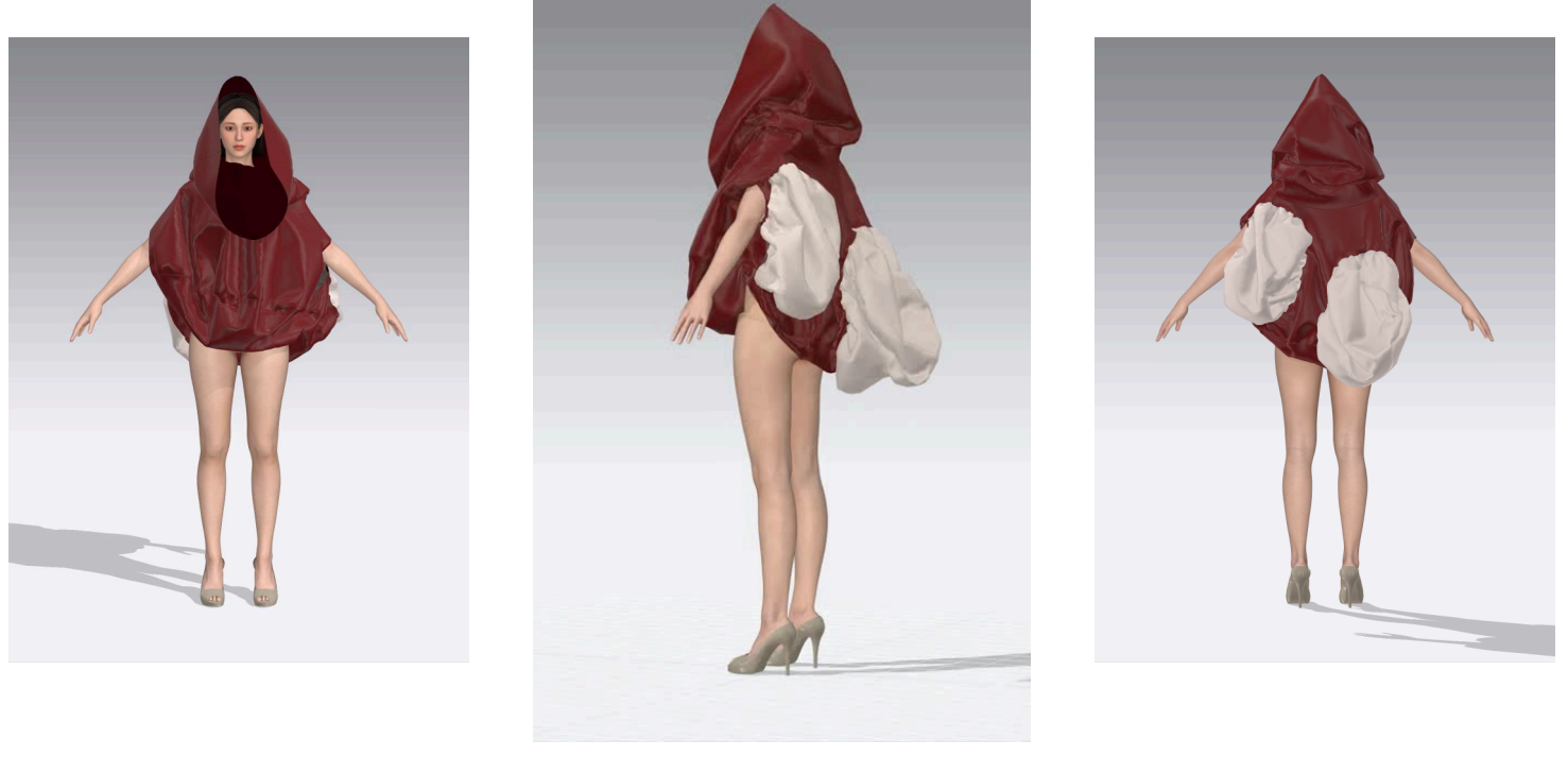 Formas geométricas orientam as modelagens e simbolizam o ponto de partida para a inovação. Entre o artesanal e o digital, Gabriela integrou a tecnologia da modelagem 3D para otimizar o uso dos tecidos, combinando fibras naturais e sintéticas.